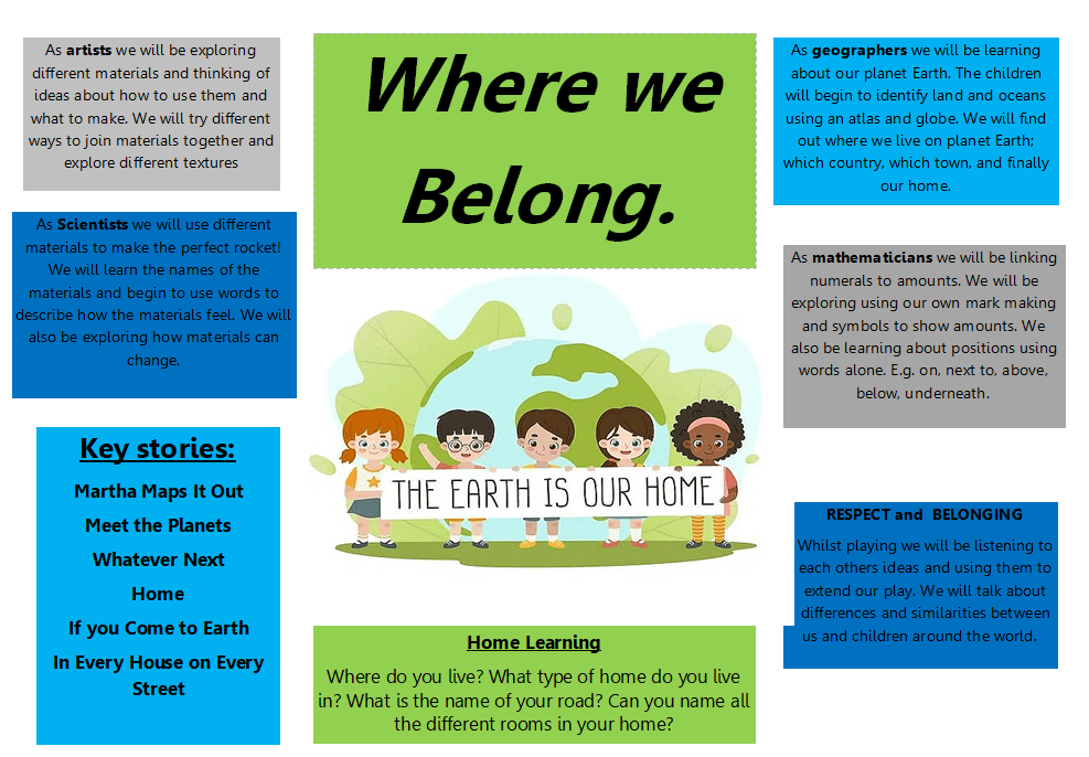 Below is an overview of our topic this half term with the areas of learning we are focusing on. Although all areas of learning are supported every day, through a topic we can enhance children’s interests and ignite new interests as they learn about the world around them. The topic letter will give an insight into the learning that is happening in preschool and ideas about how to support your child at home.