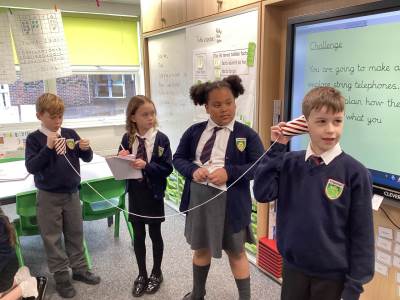 The children will be learning about sound and thinking about how sound is made. They will look at the ear and explore how vibrations travel though the ear. The children will investigate how pitch and volume can be changed. They will make string telephones to help them to explain how sound travels.
